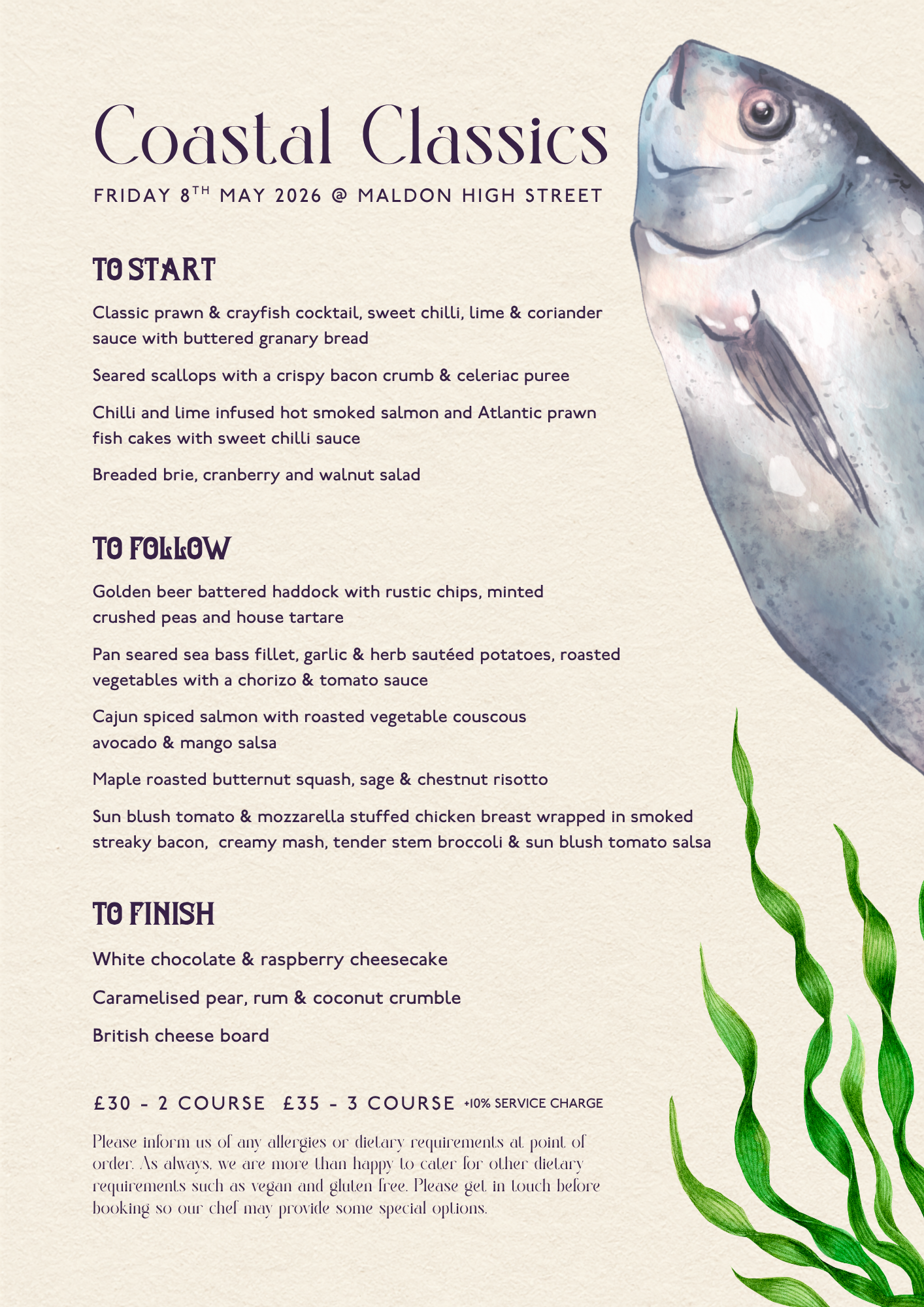 ÂŁ30 - 2 course ÂŁ35 - 3 course
