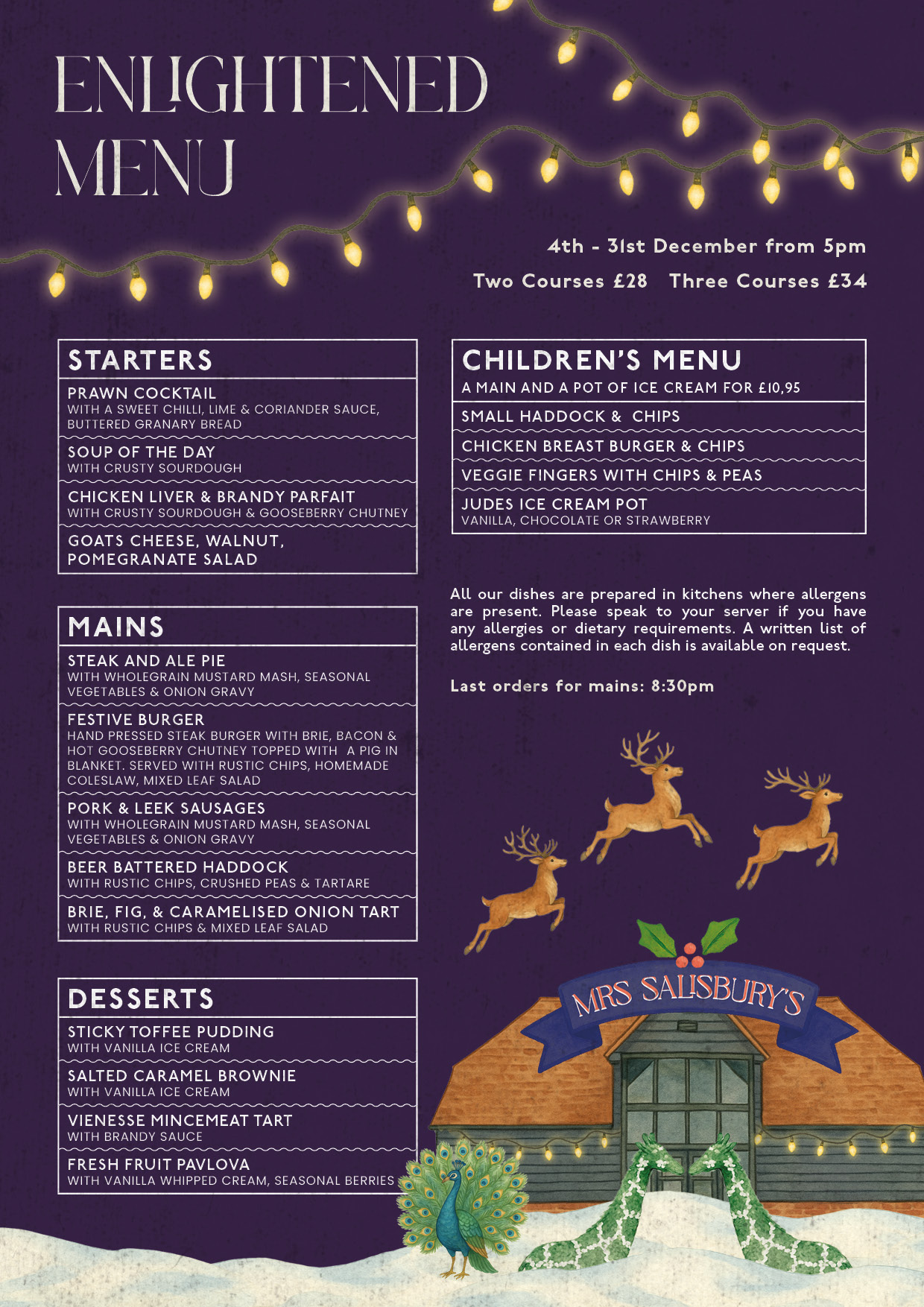 Have you booked your tickets for Markshall’s Enlightened yet? If so, then why not complete your evening with a festive three-course set menu, perfectly timed for before or after your enchanting illuminated walk.